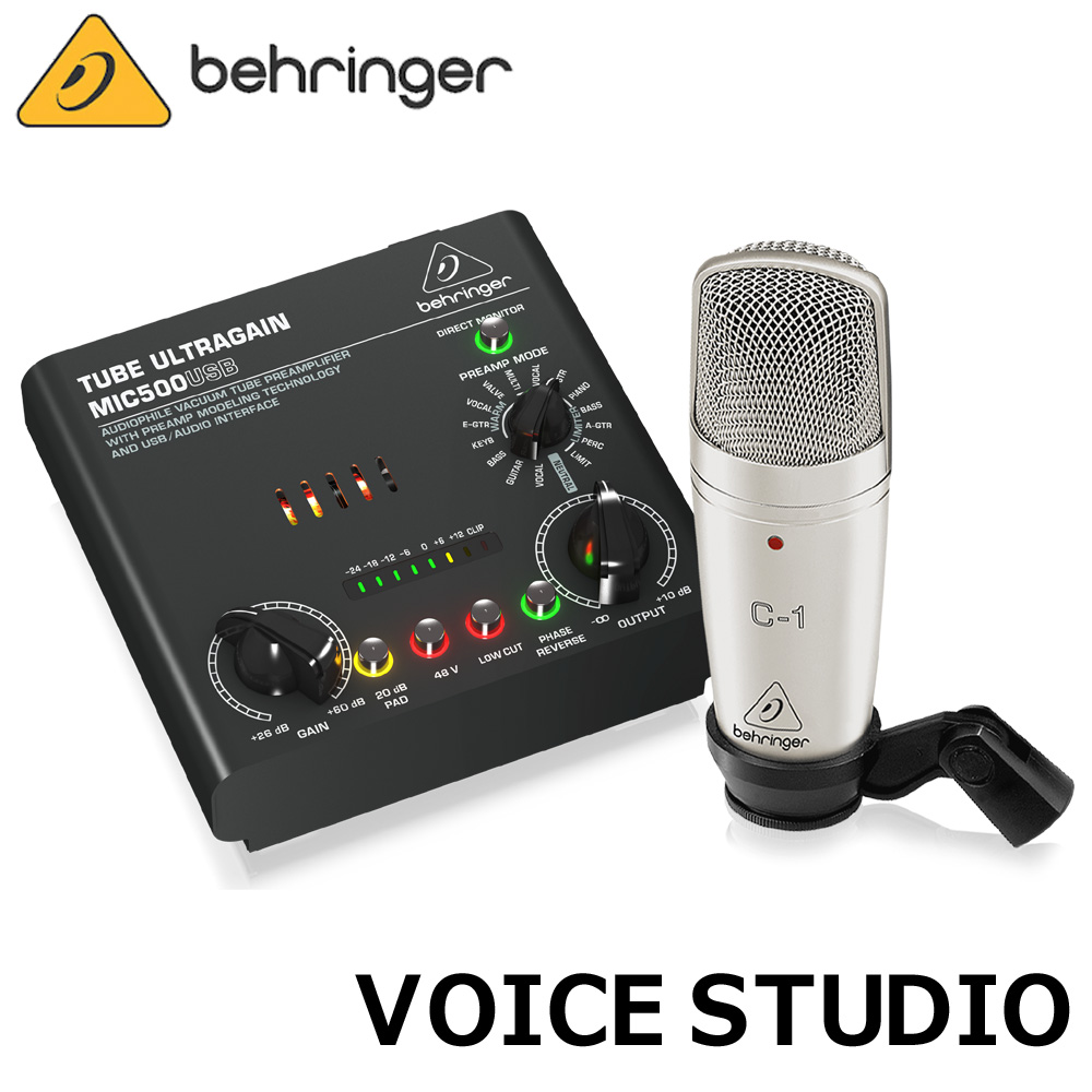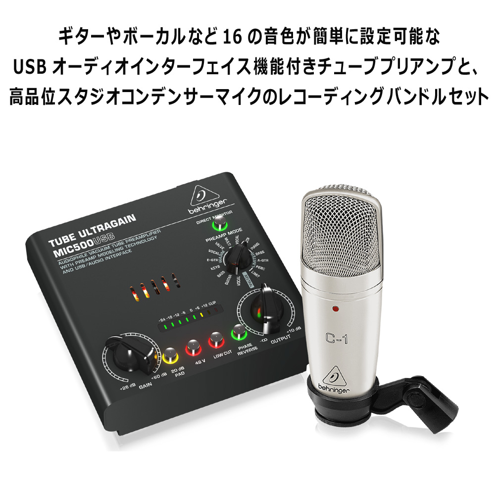 | 【BEHRINGER】 USBオーディオインターフェース機能付きプリアンプとスタジオコンデンサーマイクのレコーディングセット |