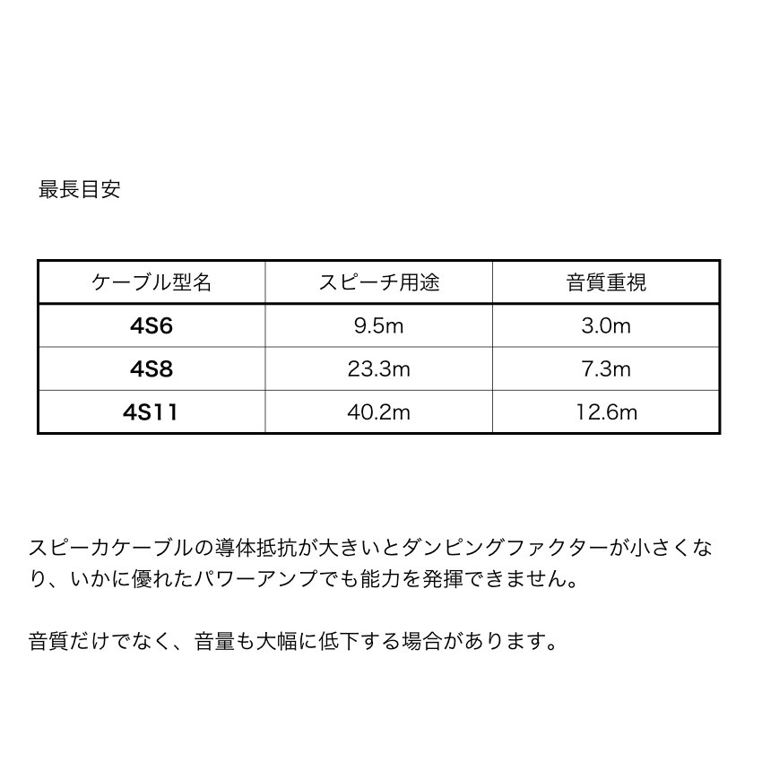 スピーカーケーブルを長くする場合、スピーカーケーブルの「断面積」が重要となり、 いわゆる”太い”ケーブルが必要となります。 |