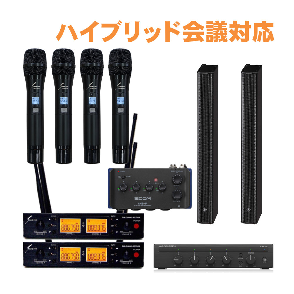 ハイブリッド会議対応 音響設備セット ワイヤレスマイク4本付き YAMAHA 縦長スピーカー(白)セット 314,000円(税込) |