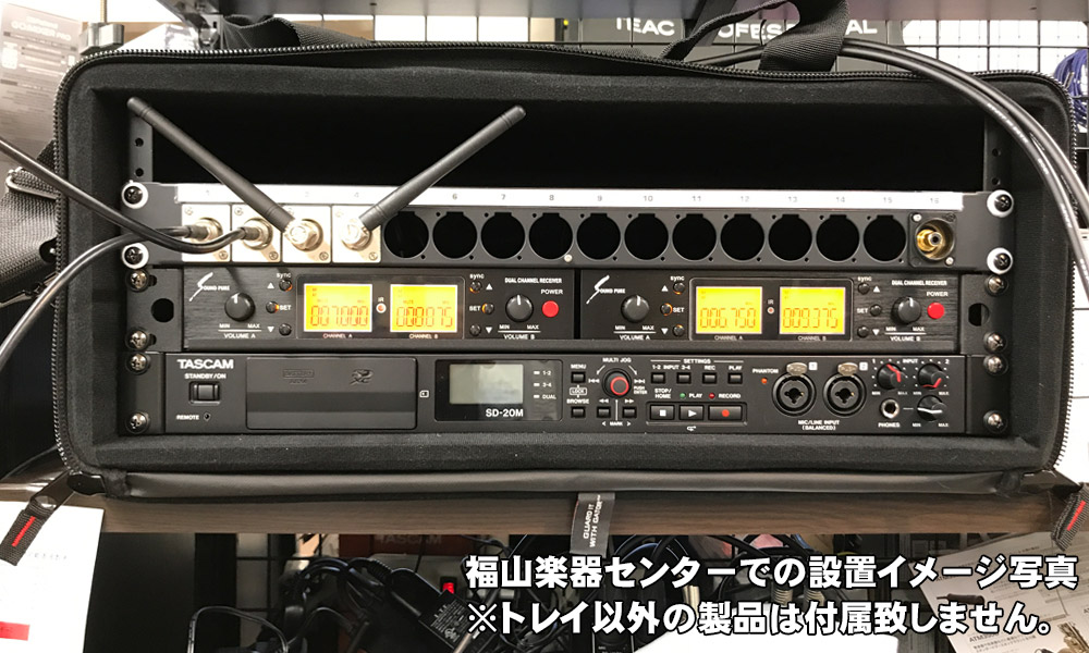 性能はそのままにハーフラックサイズに凝縮されたSOUNDPUREのSP-W-H01受信機を2台連結することができる専用ラックトレイです。