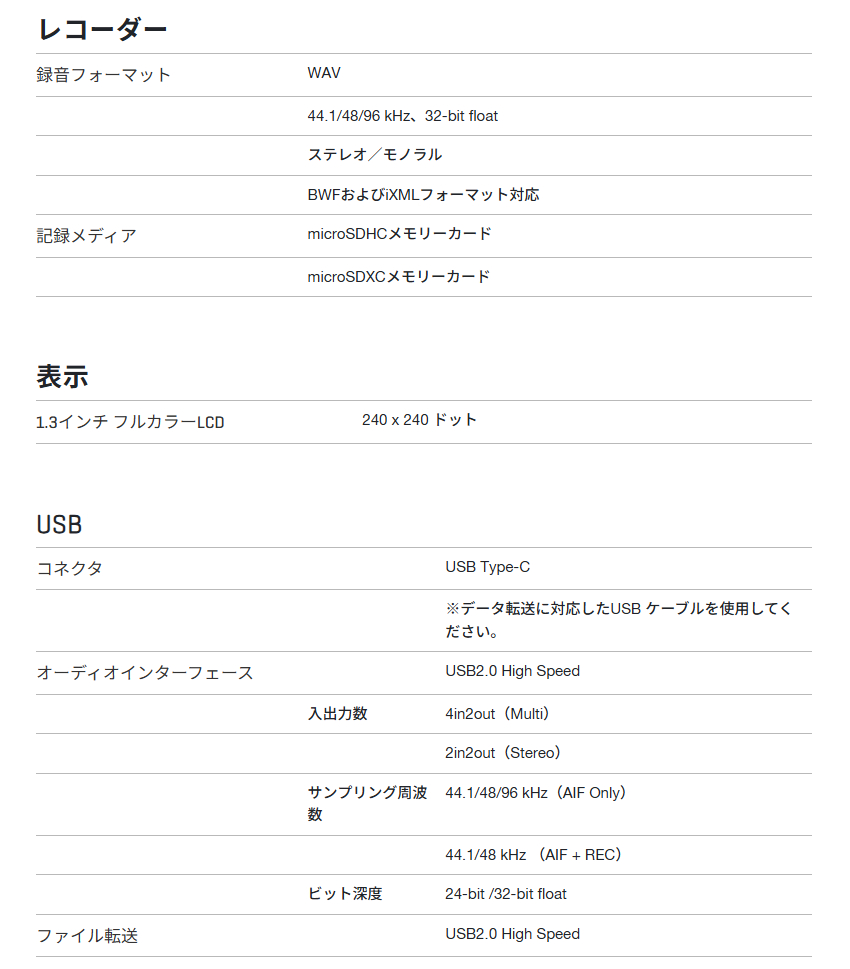 サンプリング周波数 44.1/48/96 kHz(AIF Only) 44.1/48 kHz (AIF + REC)