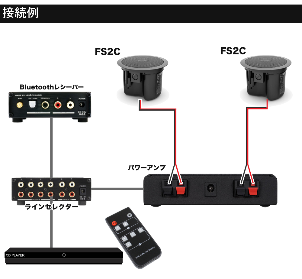 BOSE 天井埋込 FS2CB 黒 2本 ラインセレクター+Bluetooth受信機 BGMアンプセット