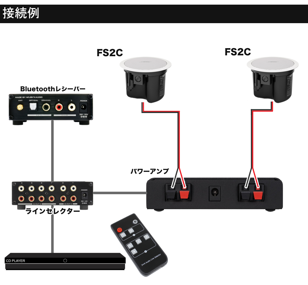【セット内容】BOSE天井埋め込みスピーカー FS2CW(2本1組)/audio-technica デジタルパワーアンプ/Bluetoothレシーバー/ラインセレクター/50cmRCAケーブル×2.スピーカーケーブル50m |
