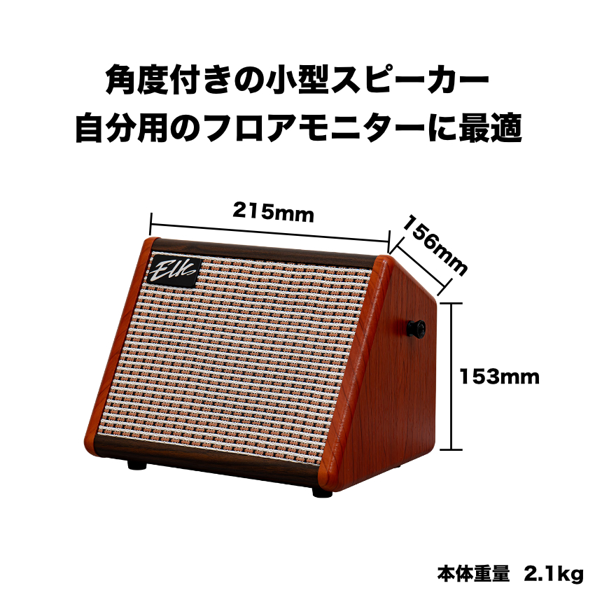 マイク入力端子にはエコー機能も付いているので、カラオケや弾き語りにも最適。角度付きの形状で、モニタースピーカーとしても最適。