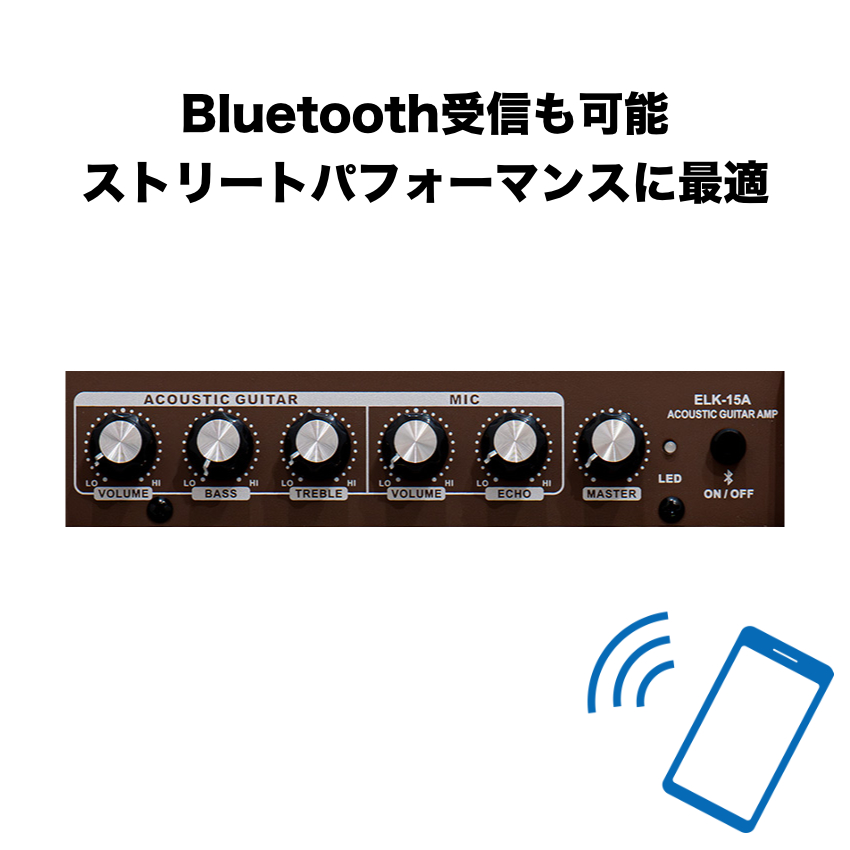 元々はアコースティックギター用に開発されたアンプですが、Bluetooth受信も可能でマイク入力端子も付いている為、簡易PA・ストリートライブにも使用できます。