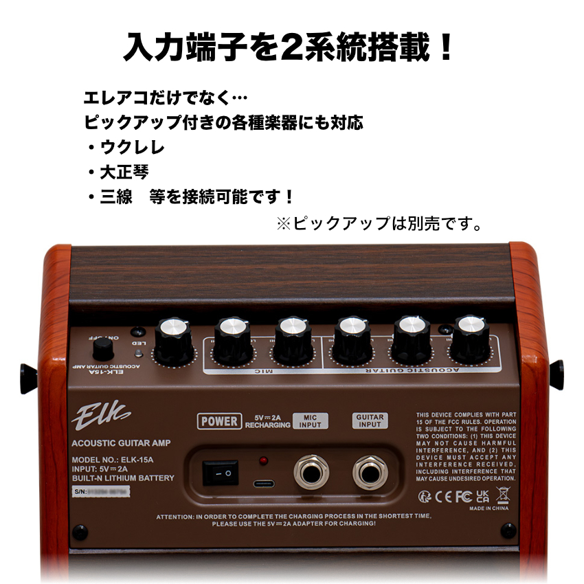 | 【セット内容】Elk アコースティックギターアンプ ELK-15A/有線マイク(5mマイクケーブル付属) |