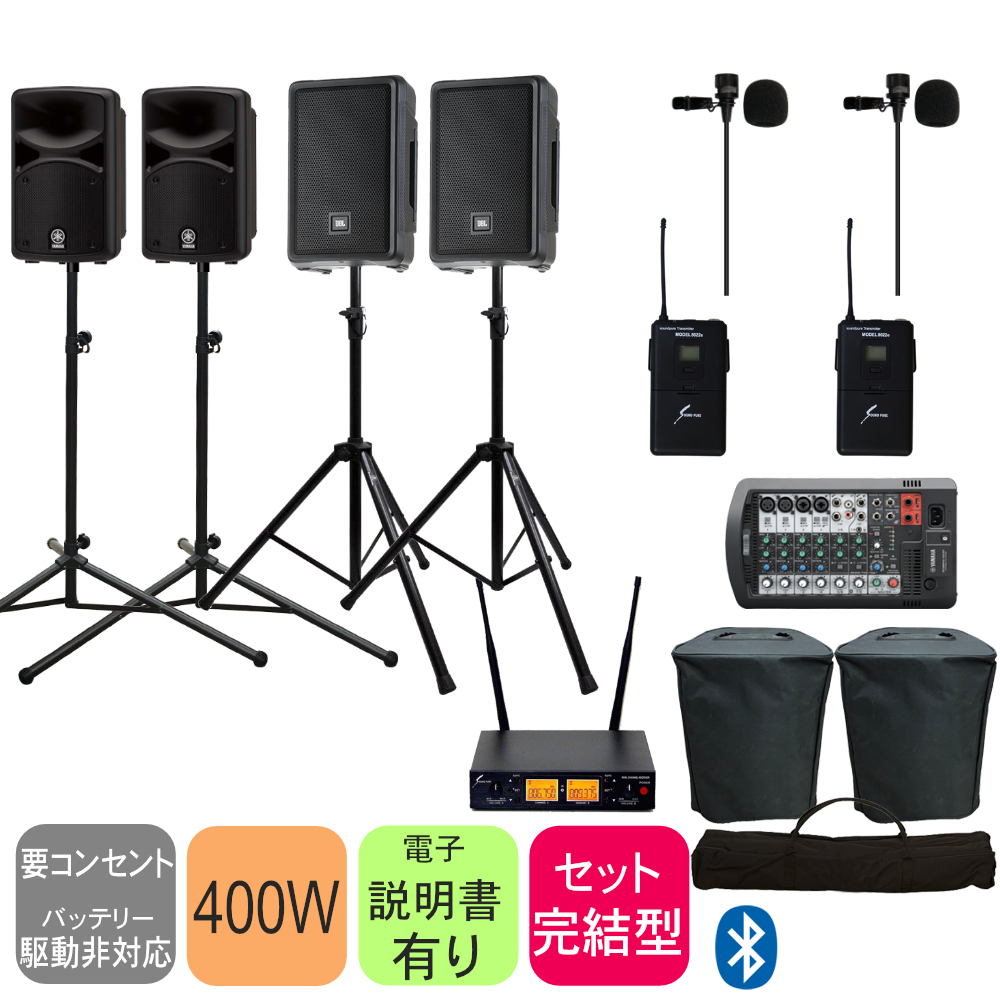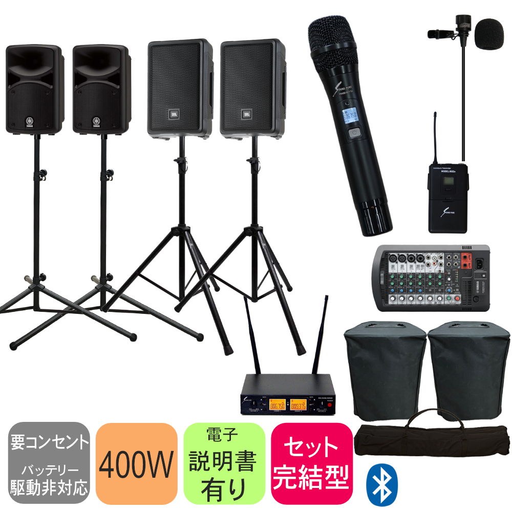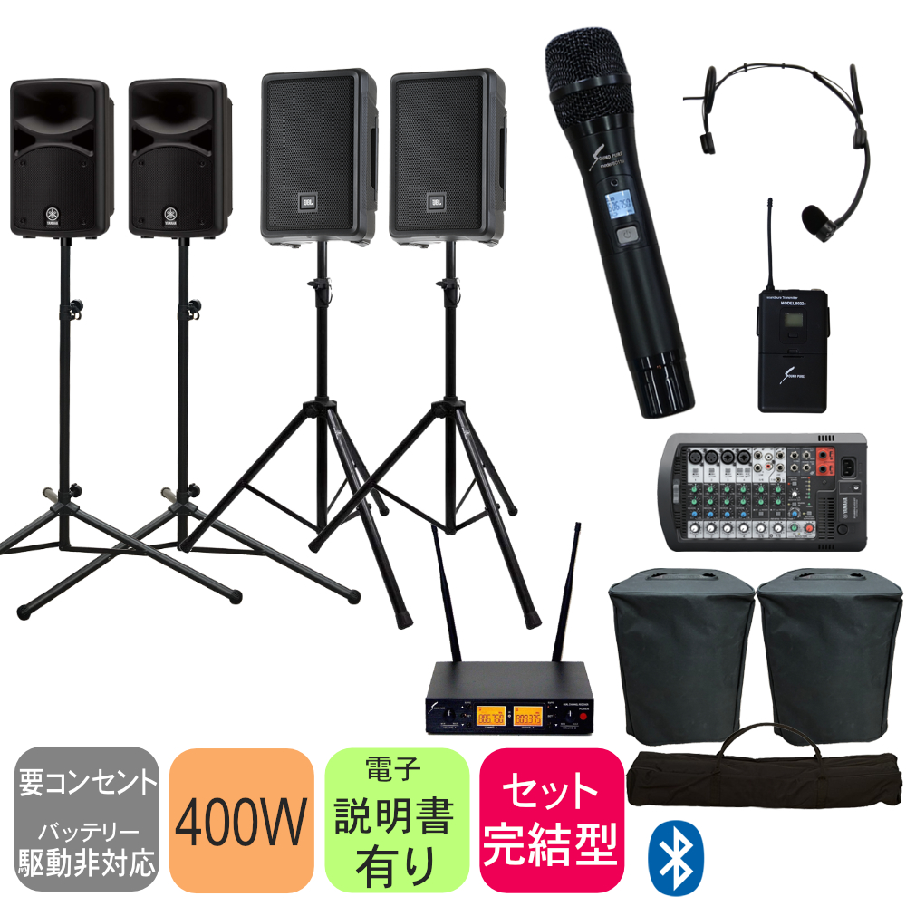 SHURE ワイヤレスマイク6本付 屋外対応 イベントセット YAMAHA ヤマハ 高出力パワードミキサー + 高耐入力スピーカー2本セット EMX7 スピーカー2本 お取り寄せ 550,000円(税込) |