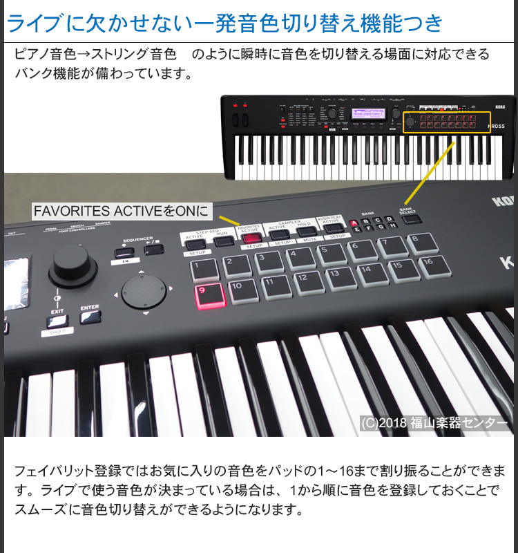 ワークステーションといえば、音楽制作に特化したものでライブには不向きというイメージがありますが、パッド機能などによりライブでもかなり使いやすくなった印象を受けます。