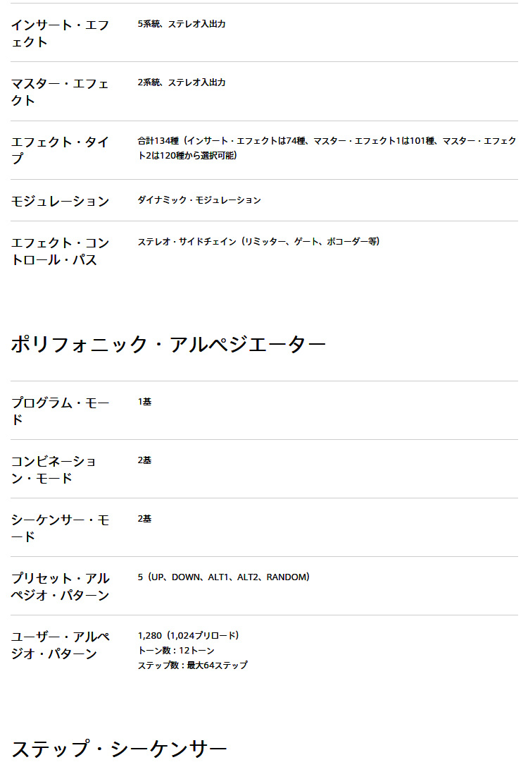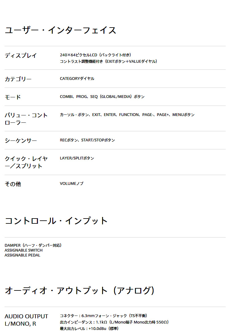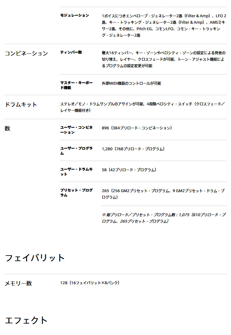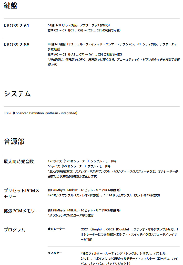 ※1:最大同時発音数は、ステレオ・マルチサンプル、ベロシティ・クロスフェードなど、オシレーターの設定により実際の発音数が変化します。