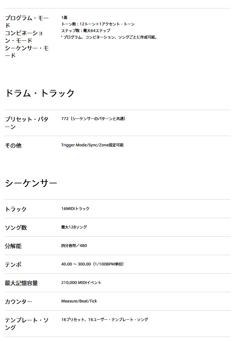 最大記憶容量 210,000 MIDIイベント