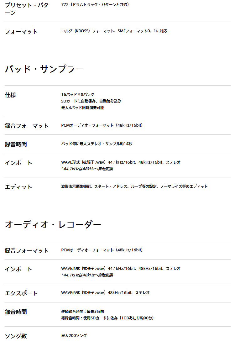 フォーマット コルグ:(KROSS)フォーマット、SMFフォーマット0、1に対応 |