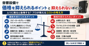 音響4月 28, 2026音響設備で「価格を抑えられるポイント」と「抑えられないポイント」