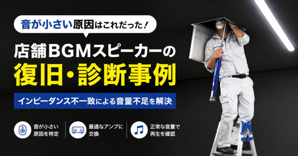 音響4月 29, 2026天井スピーカーの音が小さい?原因は“インピーダンス不一致”でした【復旧・診断事例】