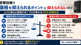 音響4月 27, 2026音響設備で「価格を抑えられるポイント」と「抑えられないポイント」